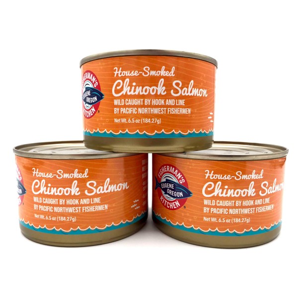 Fisherman's Kitchen Smoked Wild-Caught Chinook Salmon, 6 Ounce Can (3 Pack)