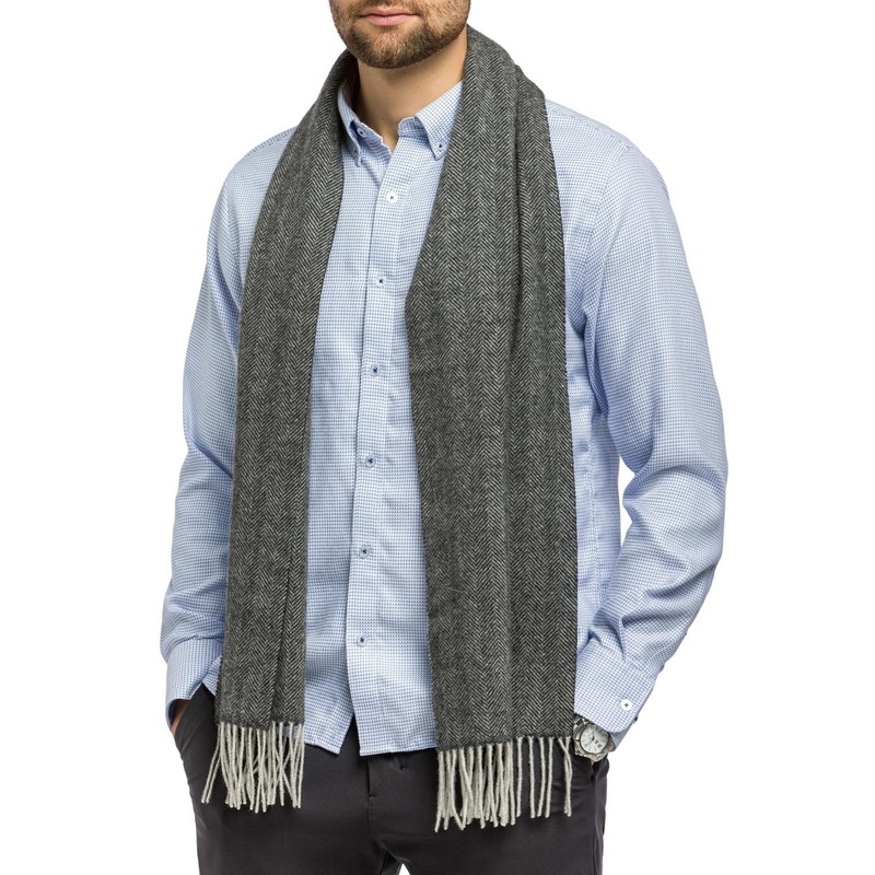 Fishers Finery Men's 100% Pure Cashmere Scarf; Super Soft and Warm (Herringbone)