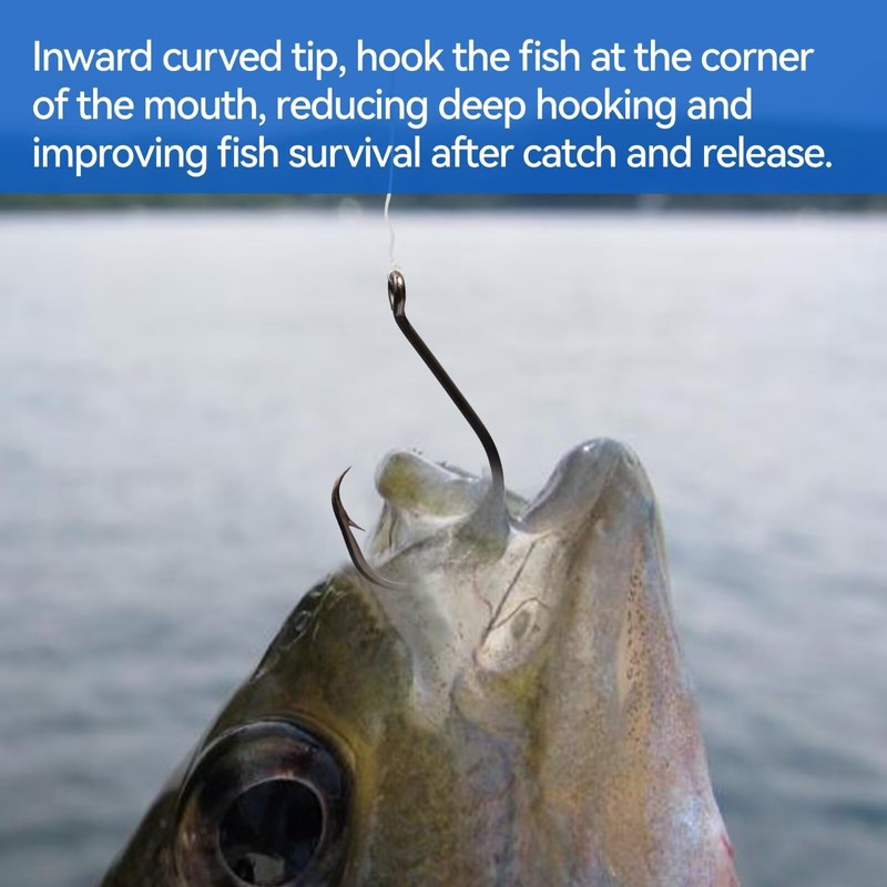 - Octopus Circle Design: The circle shape with offset point reduces gut hooking and increases safe and secure mouth-corner hookups. Perfect for catch and release anglers and effective on various fish species.