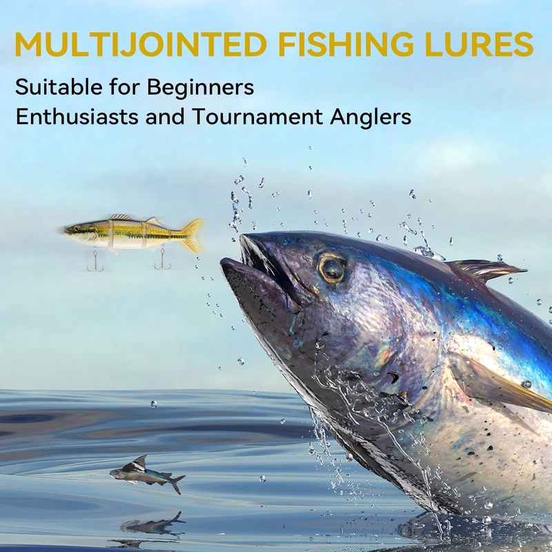 Fishing Gear, Fishing Lures for Freshwater or Saltwater, Bass Fishing Bait with Multi-Jointed Metal, Sharp Fishing Gear Realistic Contours, Easy to Use for Family Fishing Beginner and Pros (Yellow)