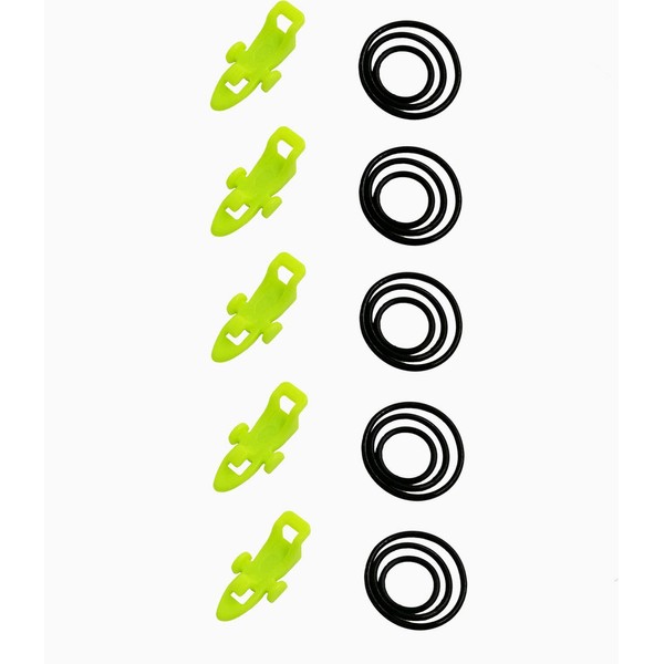 Fishing Hooks Keeper Fish Lure Bait Holders with 3 Size Elastic Rubber Rings for Worm Hooks and Treble Hook,5 Sets (Yellow-Green)