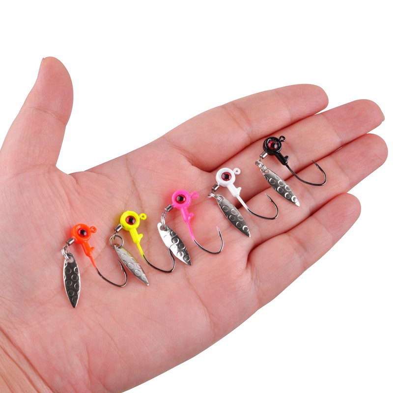 Fishing Jig Head Hooks - 10Pcs Fishing Jig Spoons with Spinner Blade Weighted Lead Head Spin Jig Hook Lure for Bass Trout Walley Crappie