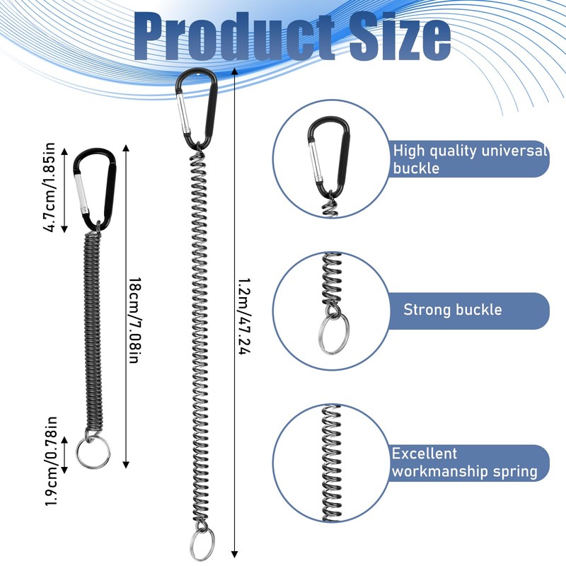 - Innovative Design for Easy Access: Featuring a stainless steel spring coil cord keychain, our lanyards provide a secure attachment for keys, fishing tools, and other small items. The coiled design and stretchable spring rope ensure that your essentials stay within reach, preventing loss or misplacement.