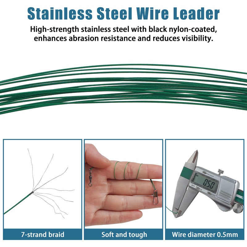 - 【HEAVY DUTY】Fishing leader line is made of stainless steel with nylon-coated,durable,flexible,high strength.With good abrasion resistance, it can resist the sharp teeth of fish very well and increase the success of catching fish.