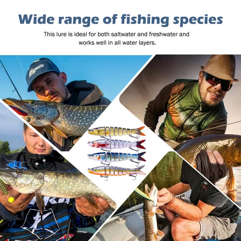 - 【Widely Fishing Species】: This fishing lure can be widely used to catch bass, yellow perch, walleye, pike, muskie, roach, trout, snook. salmon etc. This swimbait is quite suitable for both saltwater and freshwater and functions well in all water layers.