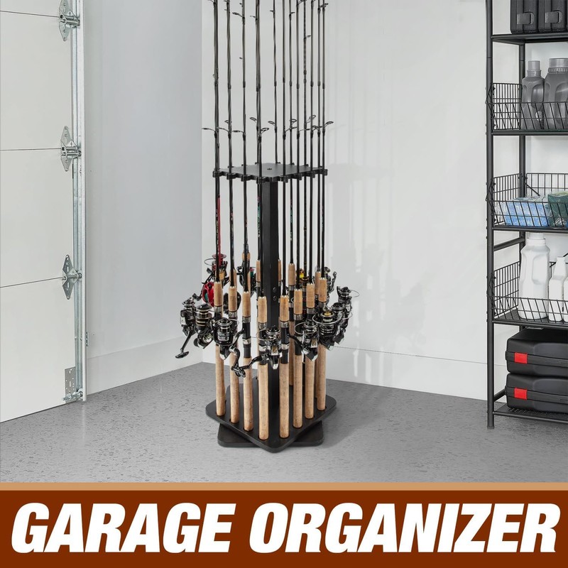 - 【Smooth 360 Rotation for Easy Access】The fishing rod holder can smoothly spin 360 degree with no stops. Turn the fishing pole holder left or right, you can always get what you want quickly. Get this beautifully crafted spinning wood fishing pole rack for space-efficient storage in your garages, basements, cabins or home. This fishing rod rack is also a great retail display in a fishing tackle shop!