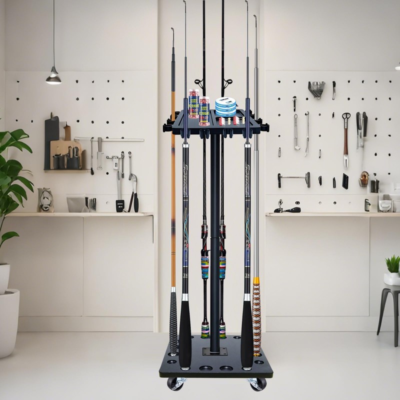 - 【Multi-Purpose Storage】 In addition to storing up to 16 fishing rods, this rack also provides extra storage for accessories like fishing reels, lines, pliers, tackle, and more. Perfect for organizing your fishing gear and keeping everything you need within arm's reach.