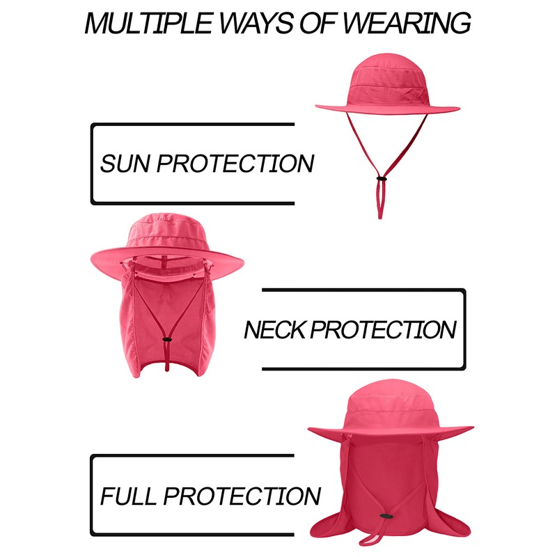 Fishing Sun Bonnie Bucket Hat Unisex Adult 360% UV UPF 50+ Solar Protection, Lightweight Outdoor Summer Wide Brim Visor with Detachable Neck Flap, Face Cover Mask, Windproof, for Beach, Hot Pink