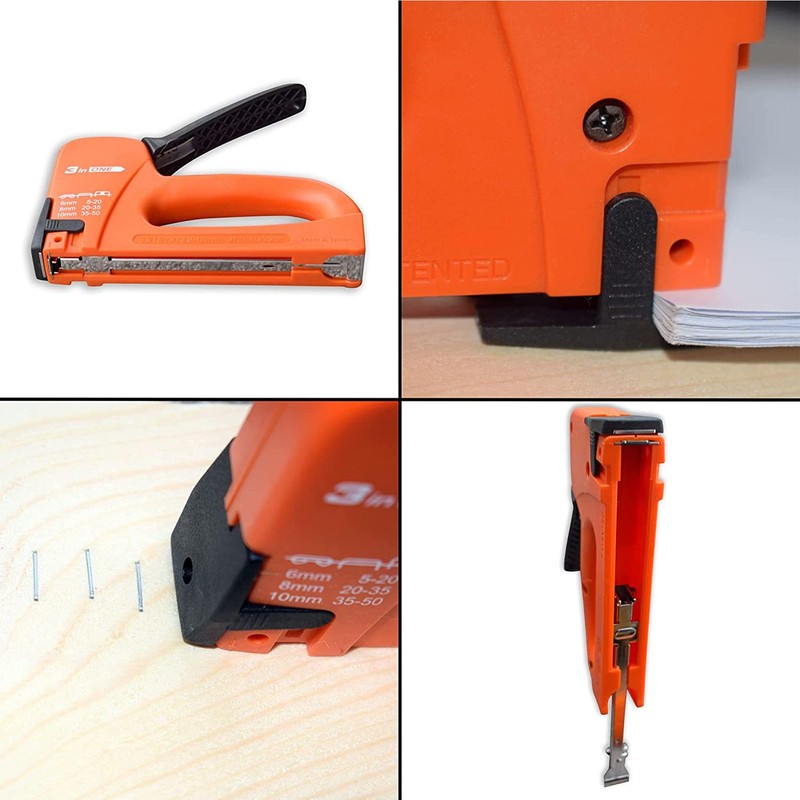 - Material: ABS housing and multi-function nylon end piece, wall stapler, staples of type:Rapid/Tacwise #53/#13 from 6 to 12mm length, Arrow JT21 1/4 and 3/8 inch, Stanley #A/TRA200 from 6 to 12mm length, classic stapler and For cabing, for cabling, stapof type: Rapid/Tacwise #53 from 6 to 12 mm length, Arrow JT21 1/4 and 3/8 inch, Stanley #A/TRA200 from 6 to 12 mm length.