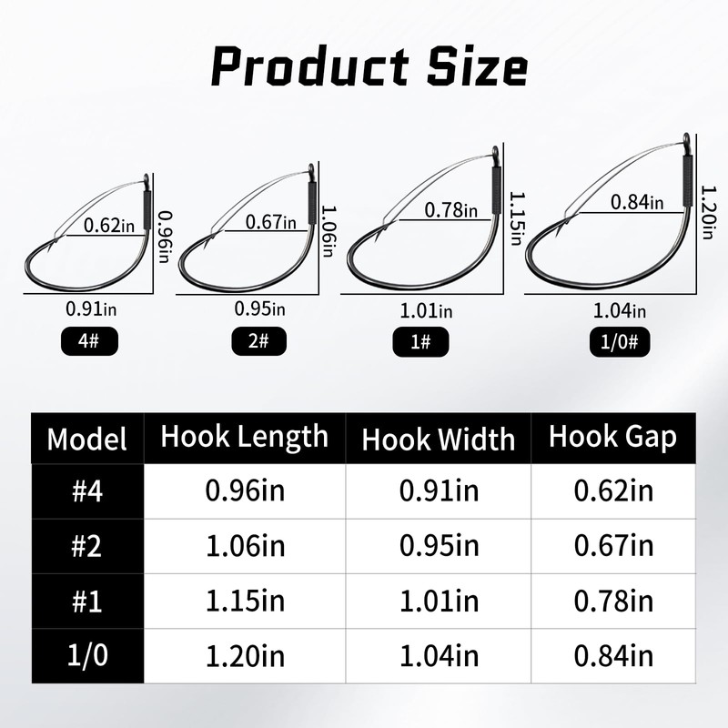 - 【Wide Gap Wacky Hooks】Our weedless hooks are designed with a wide gap to maximise hook-up rates. It can meet different fishing scenarios, whether you are fishing in lakes, rivers or ponds