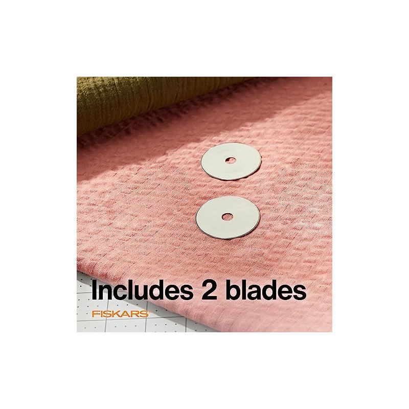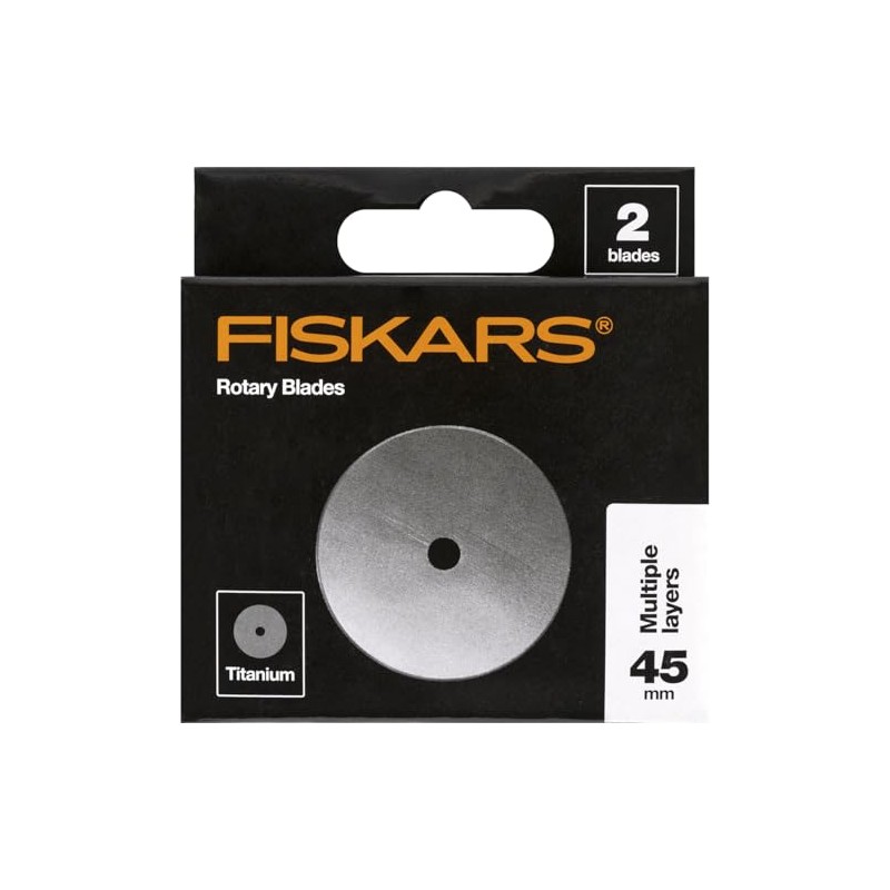- INCLUDES: 2 Fiskars 45mm Titanium Rotary Blades with blade tray; Full lifetime warranty