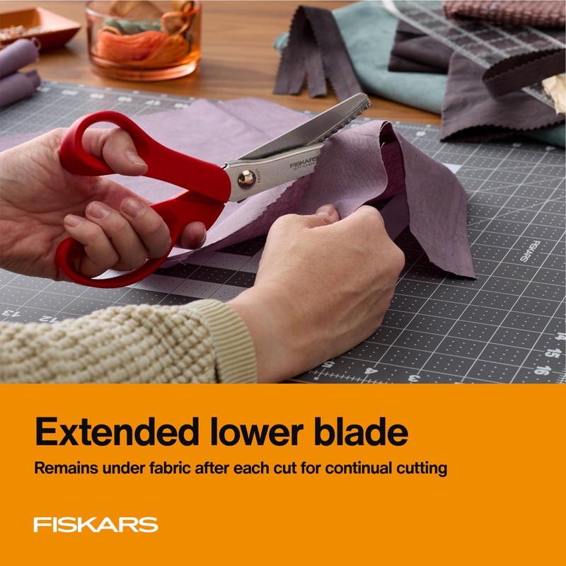 Fiskars 8” Premier Left-Handed Pinking Shears, Precision Stainless Steel Blades for Zigzag Cutting, Ergonomic Handle for Comfort