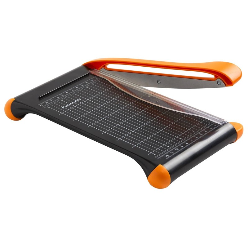• The Fiskars Bypass Paper Cutter (A5) Recycled Blend is easy to use and has a base plate made from 30% recycled consumer materials. Perfect for on the go and smaller projects. Imperial & Metric Units Self-sharpening steel blade that never needs to be replaced. Paper clamp and smudge guard keep materials in place without fingerprints. A4 Landscape, A5 Portrait Base plate width: 13.3 cm. 9" Cutting Length Rubber feet for stability Cutting capacity: 10 sheets (20# bond / 75gsm paper).
