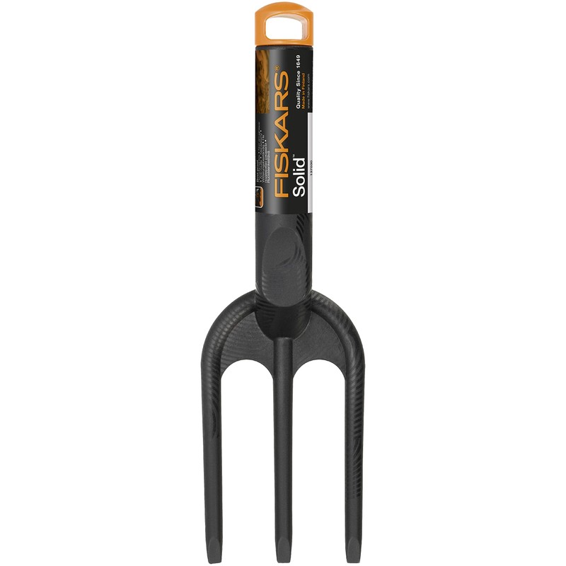 - Box contents: 1x Fiskars solid plant fork, length: 26 cm, weight: 89 g, material: fibreglass reinforced plastic, colour: black/orange, 1000696