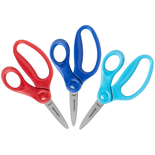 Fiskars Kids Scissors, Scissors for School, Safety Scissors, Pointed Tip Scissors, 5 Inch, 3 Pack, Red, Blue, Turquoise