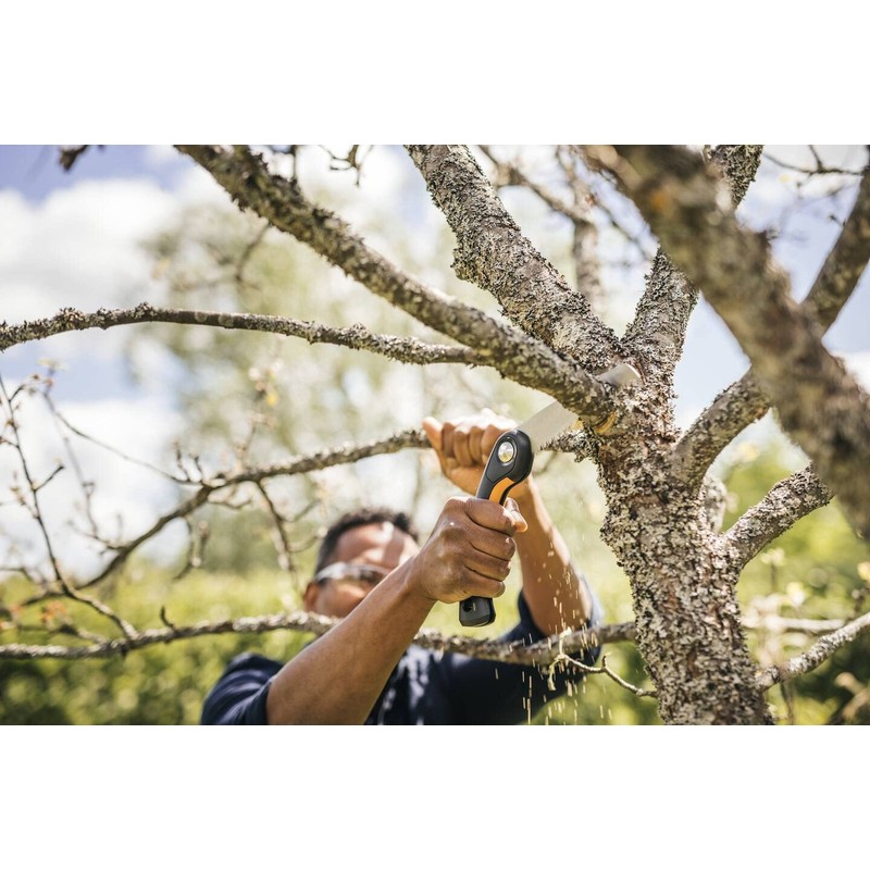 - Box contents: 1x Fiskars Plus folding saw, 3 cutting positions, power tooth blade, coarse toothing, blade length: 21 cm, black/orange, SW69, 1067553