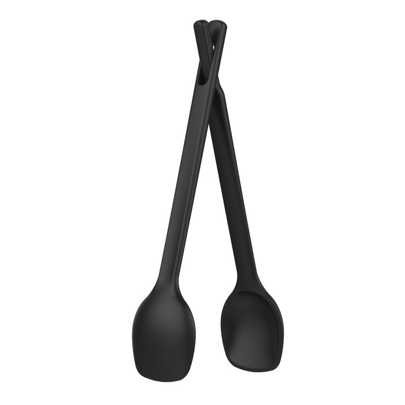 Fiskars Practical salad servers, can be used as a spoon or put together as tongs, length: 29 cm, plastic, functional shape, black, 1014434