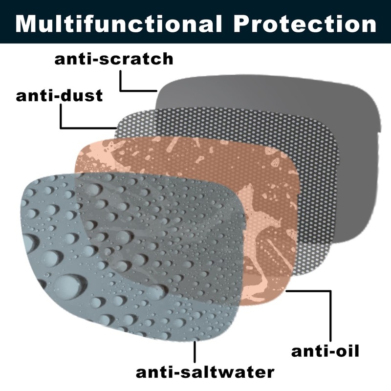 - Anti4s Lenses: The outer layers of lens are specially coated, prefectly preventing from sea corrosion, oil stains, adhesive dust and slightly scratches, which extends the lenses' life-span and makes them easy to clean. Anti4s: anti-saltwater, anti-oil, anti-dust and anti-scratch.