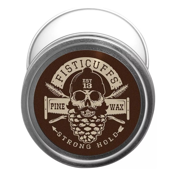 vertido a mano; 1 onza de lata de cera de bigote.; Ingredientes de alta calidad.; Aroma a pino.; Mantiene un fuerte agarre. 1 oz. Lata de Fisticuffs con aroma a pino fuerte para mantener la cera de bigote. Todos nuestros productos estan en inglés SKU 1042287921