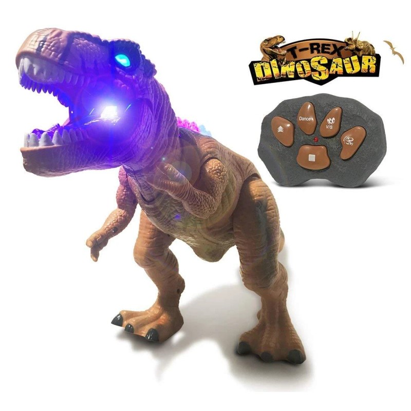 fistone RC Remote Control T-Rex Dinosaur Walking Dancing Light up Gift Toy Kids Smart - Brown