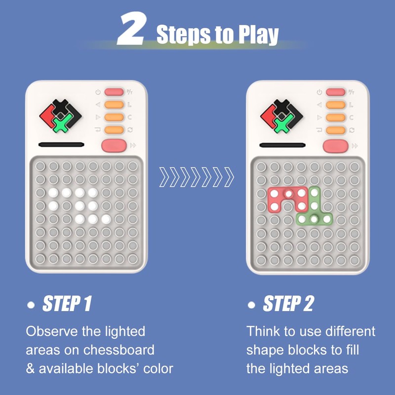 - 【Captivating and Interactive Gameplay】El juego de este rompecabezas electrónico consiste en colocar las piezas del color adecuado para cubrir el área iluminada, y el indicador de la izquierda determina qué color debe utilizar en cada desafío. El desafío y la emoción del juego mantendrán a los niños comprometidos y entretenidos.