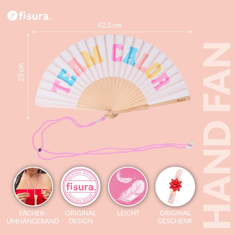 - Compartments with saying - If you hate winter and celebrate every ray of sunlight, the beige fan with the inscription "Team Calor" is just the thing for you. It brings colour and joy to your summer outfits and shows that you prefer to enjoy the heat than hide in winter clothes!