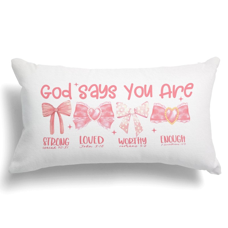 FISWAFY Coquette Christian Pillow Covers 20x12, God Says You are Preppy Pink Coquette Bows Lumbar Pillow Covers for Couch, Preppy Room Decor, Girly Room Decor, Christian Gifts for Women Girls