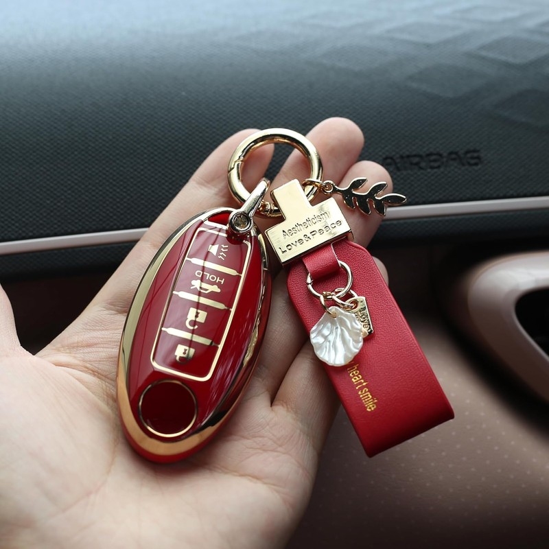 【Premium Material】Key case is made of premium soft TPU, a soft and smooth touch feeling. New Gold rimmed design, shining and bling Perfect match with premium keychain. Convenient to hang the car key in your hand, bag, or the home entry car key hooks.