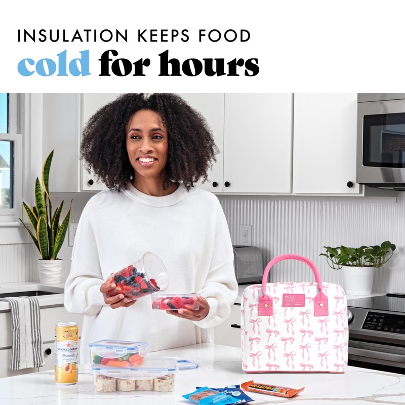 Fit & Fresh Bloomington Lunch Bag for Women - Insulated Large Lunch Box for Work with Containers, Leak-Resistant, Stain-Resistant, Zipper Closure, Pink Bows