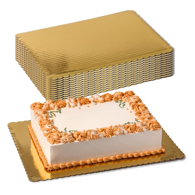 Fit Meal Prep brand has what you are searching for, quality products made affordable as compared to others. Our products are perfect for your businesses, restaurants, bakery and home-baked goodies.It will help you deliver your goods in a clean and elegant presentation whether it is for baking, cooking, food preparation and food service supplies. You could never go wrong. We got you covered!Good intentions make promisesA brand you can trust and is known to be safe, sturdy and reliable whether you are serving or packaging all kinds of cakes and desserts. REMEMBER! What it looks tempts your eyes that makes you wanna taste it.Here are more reasons to love this Half Sheet Gold Cake Board:Total of 20 in a pack, 19 length x 14width, 1/8 inches thickElegant Scalloped edge color Gold cake boards to suit any event or occasionClassy style to display and showcase your foodA durable paperboard construction is perfect to transport baked goodsYou can also use this as a tray for your pizza, pies, pastries or for meat and cheese platters.
