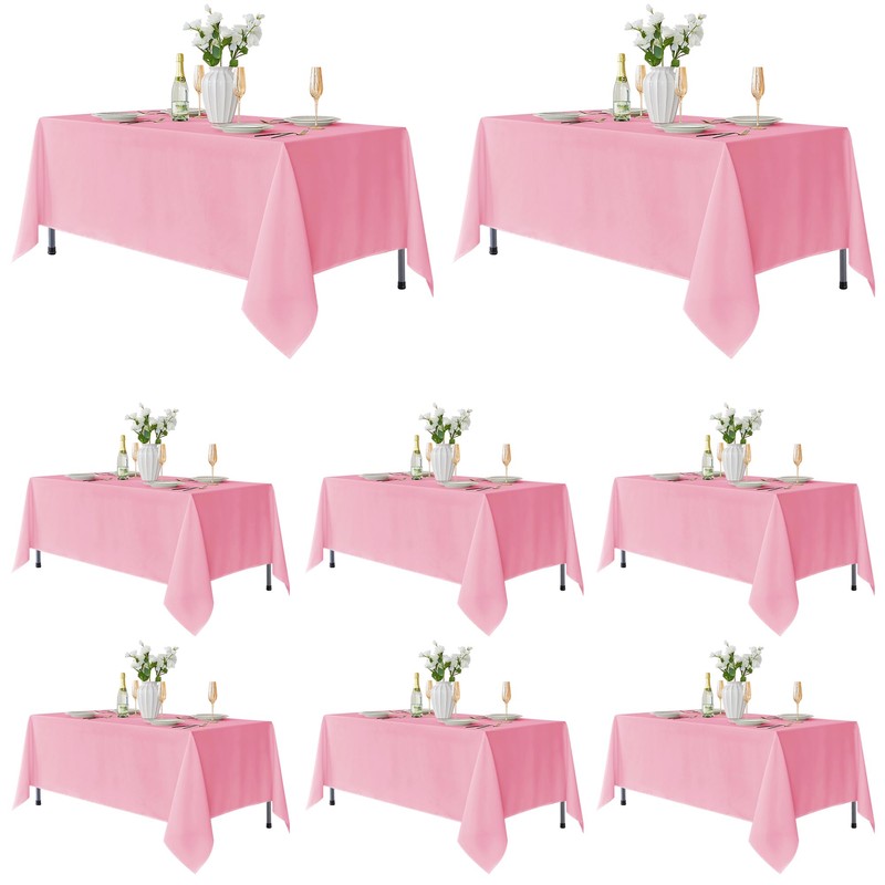 Fitable 8 Pack Rectangle Tablecloths: Stain Resistant Wrinkle Free Fabric Table Clothes, Washable Reusable Polyester Table Covers for Wedding Party Birthday Banquet Reception(Pink, 60x102 Inch)