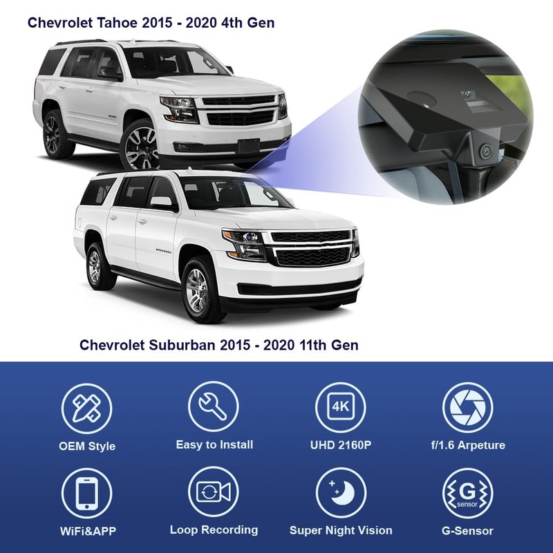 - For 2015-2020 Suburban & Tahoe, has Auto Dimming: FITCAMX dash cam blends very well with the interior and looks factory-made, No need to run cables, Nothing hangs from the windshield. Once installed it looks totally OEM! Compatible with Chevrolet Suburban & Tahoe 2015-2020 vehicle styles that has Auto-Dimming Rear View Mirror. (*CONFIRM WITH FITCAMX IF ORDERED!)