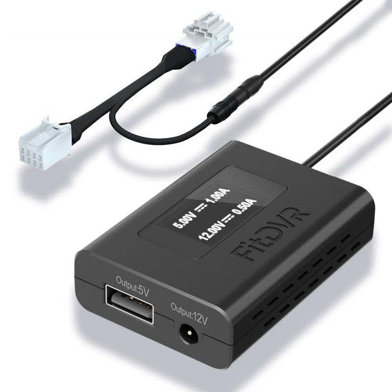 FitDVR Power Adapter (8-Pin) for Honda, Connects to Overhead Console, LED Display USB Power Source, Easy to Install, 5V 12V Output, for Dash Cam, Radar, D3-030