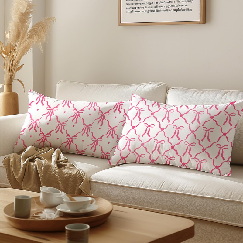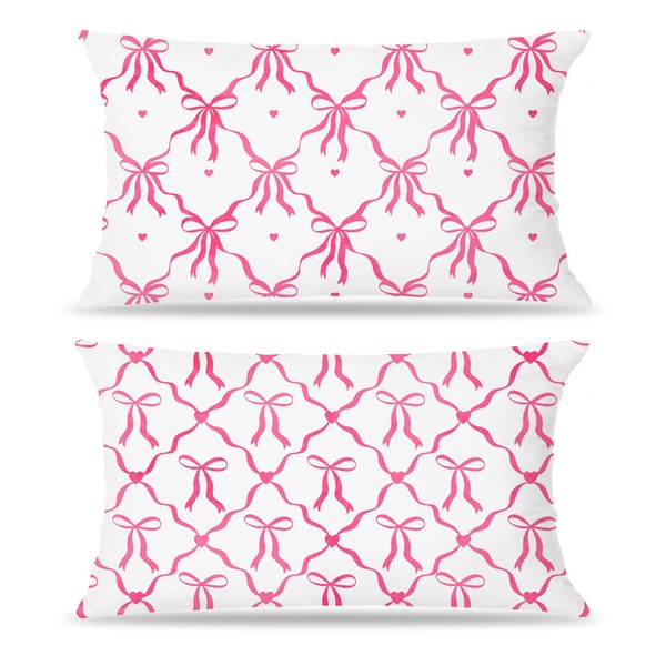 FITIE Pink Coquette Bow Lumbar Pillow Covers 12x20 Double-Sided Set of 2, Coquette Preppy Room Decor Aesthetic, Girly Bedroom Decor, Pink Preppy Throw Pillow Covers for Girls Bedroom Dorm Apartment