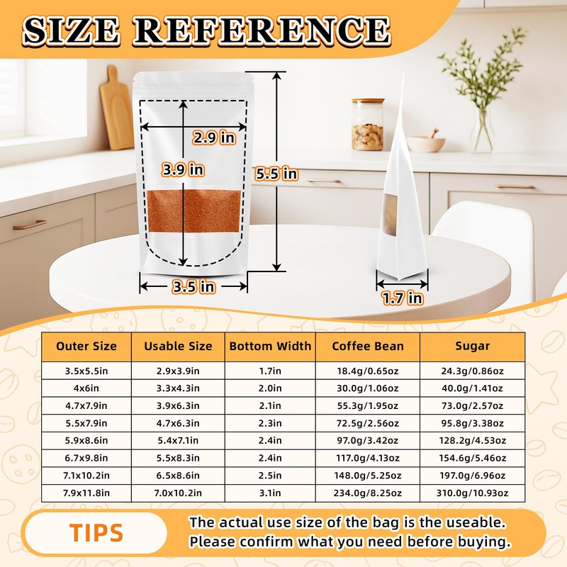 - Multiple Applications: These sealed bags are perfect for a wide range of items, including coffee beans, spices, snacks, pet treats, bath products, and more. Whether you are using it for baked goods packaging, candy bags, snack bag, or as dog treat bag, it is very suitable. These small bags provide both practicality and a professional look.