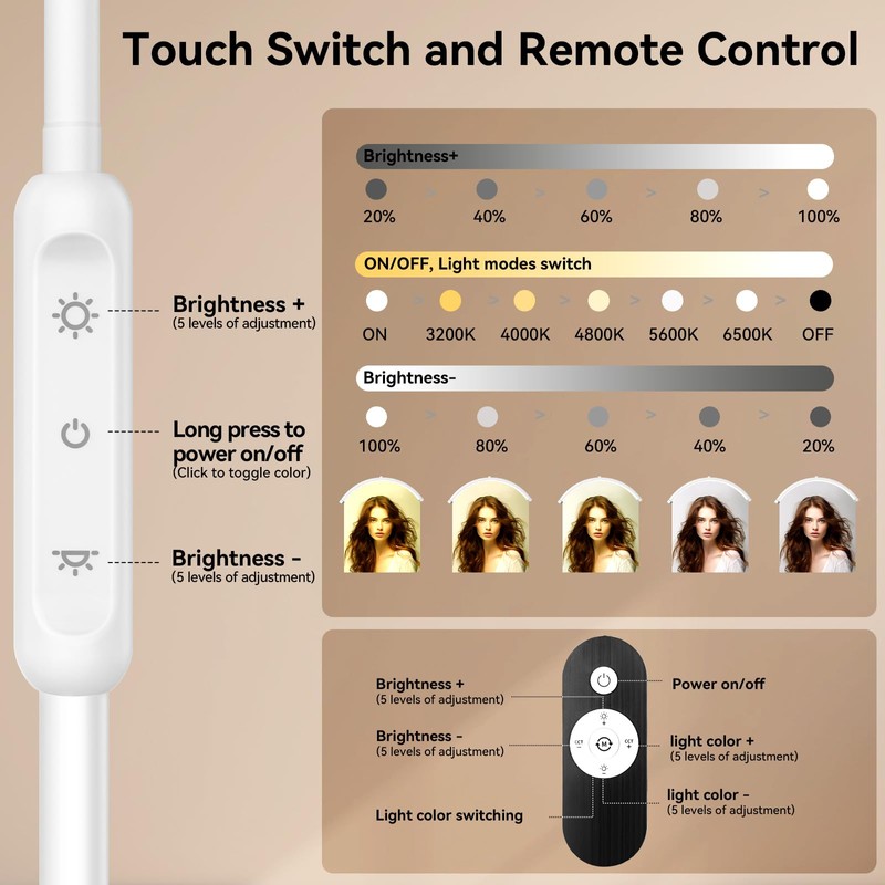 - Dual Control Options: This floor lamp offers both touch-sensitive controls and a wireless remote; Easily adjust brightness levels with precise dimming control at the lamp pole, or conveniently manage your lighting from anywhere in the room using the included remote - delivering effortless lighting control day and night