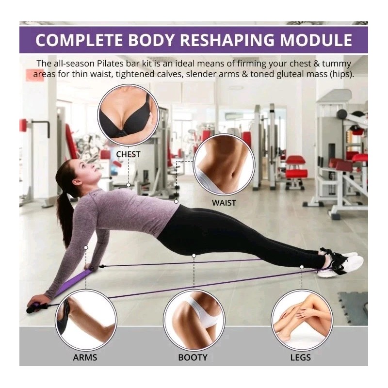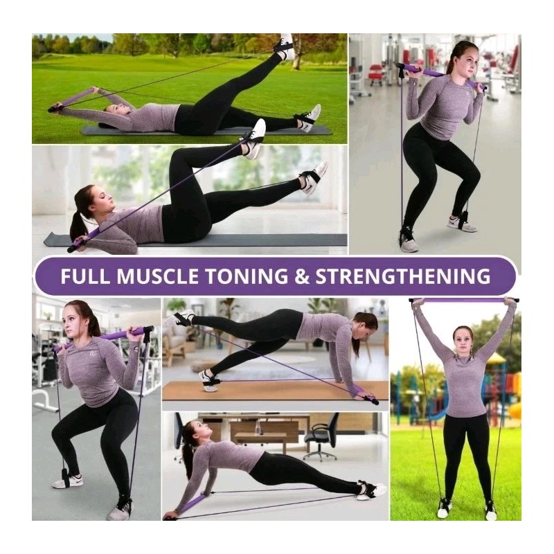 Fitness Form Lab Portable Pilates Bar Kit with Resistance Band Yoga Kit Body Shaping Toning Purp