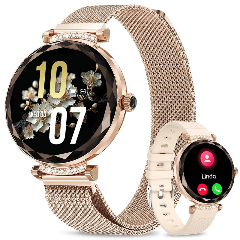 - 1.19 inch HD touch screen and personalised fashion dial: the women's smart watch has a 1.19 inch AMOLED HD touch screen with a resolution of 390 x 390, high image quality, short response time and smooth operation, offering you an excellent visual and interactive experience. When you connect your smart watch to the "Fitcloudpro" app, you have more than 200 online dials to choose from, and you can also set your favourite photos as dials to make your smart watch more personal