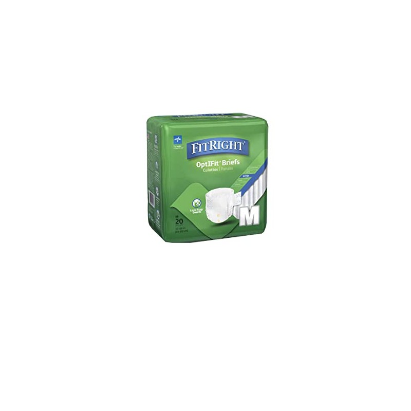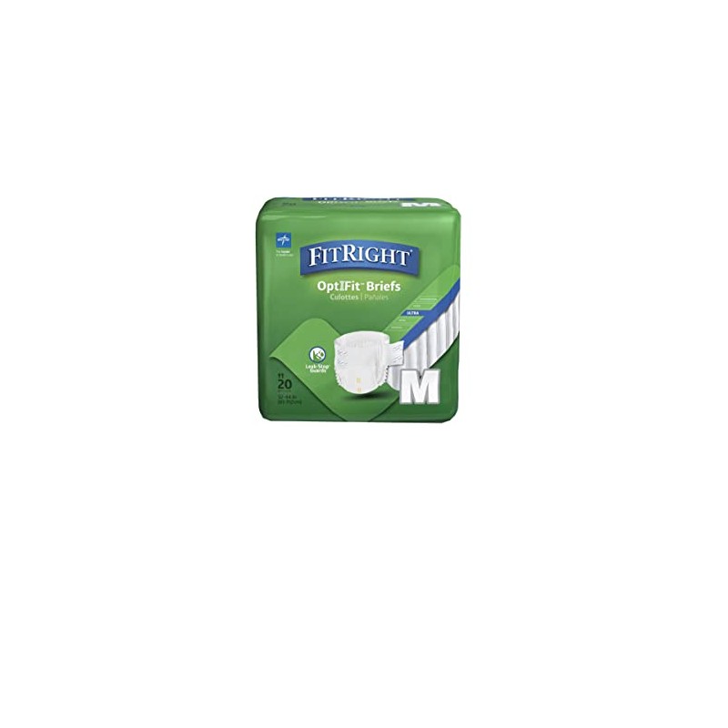 FitRight OptiFit Ultra Adult Briefs, Incontinence Diapers with Tabs, Heavy Absorbency, Medium, 32 to 44", 20 Count