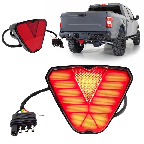 Light-Up Triangle Shape Trailer Hitch Receiver Cover Brake Tail Turn Sequential Signal Light 4-in-1 function - fits 2" HitchesMake your vehicle stand out on the road with this lighted hitch cover. It adds a stylish touch and increases safety by lighting up red when you activate your vehicle's brakes, running lights, hazard lamps, or turn signals.