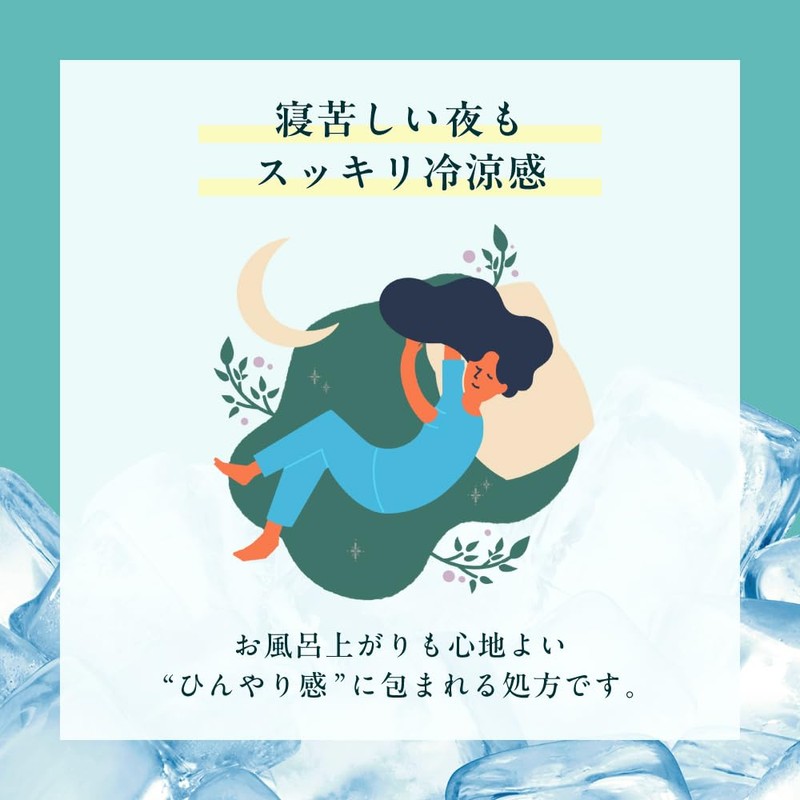 - Point 1: Feel refreshed at tropical nights and hot water. Cool Formula for Bathing: Keeps your skin clean and sticky. Mint *1 x Meditation Extract*2 3 menthol formula, a cool formula that wraps you in a pleasant cooling sensation even after a bath in the hot summer. *1: Peppermint leaf oil (cooling ingredient)/*2: (moisturizing ingredient)/*3: (cooling ingredient)