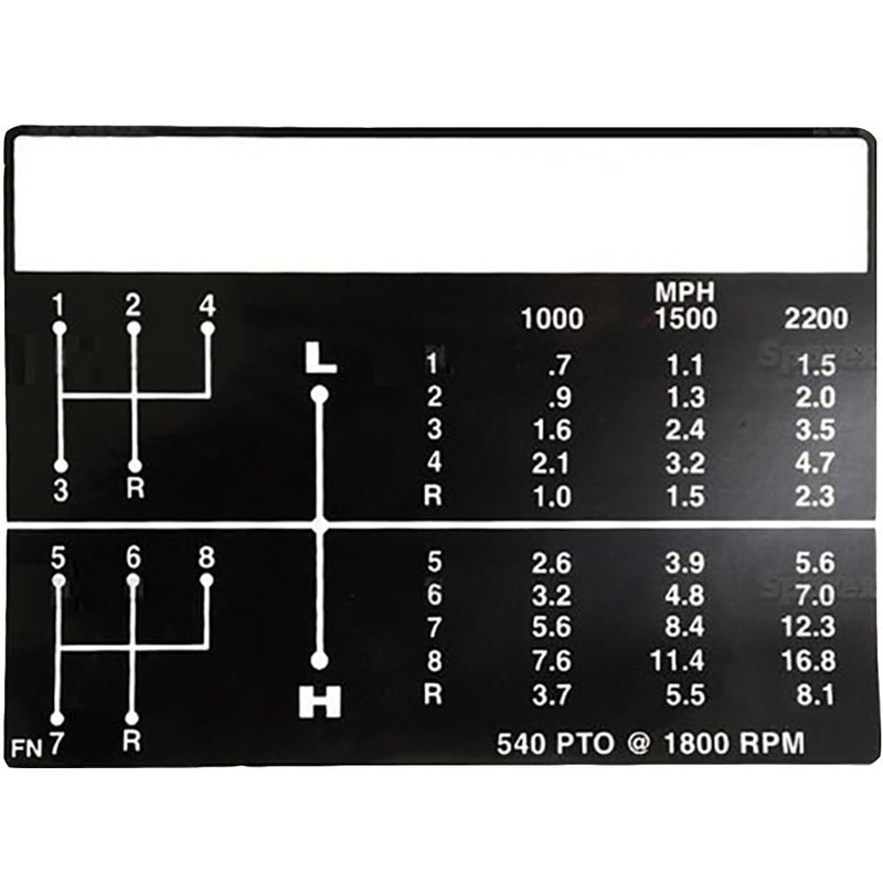 - Tech Info: 8 Speed Shift Pattern Decal w/ Independent PTO.