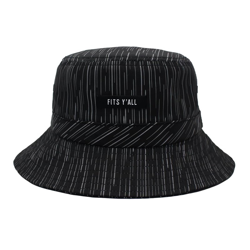 Fits Y'all Microfiber Packable Rain Pattern Bucket Hat: Stain & Water Repellent, Quick Dry, for All Genders (US, Alpha, Medium, Ebony Black)