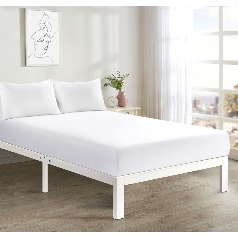 Fitted Bed Sheet With FREE MATCHING 2 X PILLOW CASES Poly Cotton Percale Easy Care Plain Dyed Bed Sheet White Double