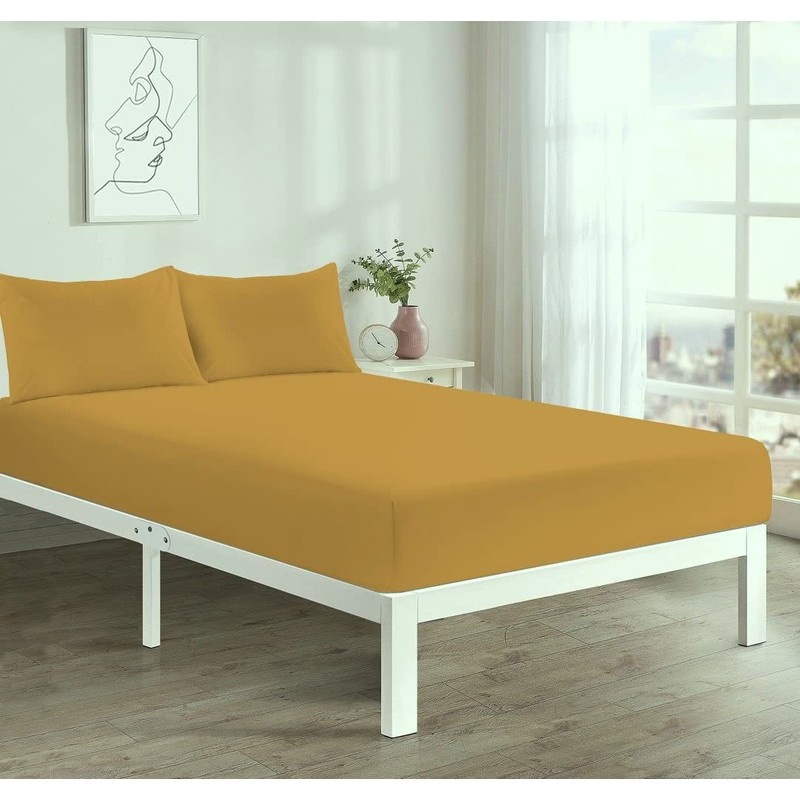 Fitted Bed Sheet With FREE Pillow Case Poly Cotton MUSTARD KING