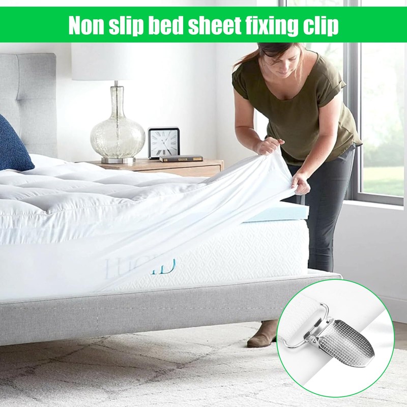 ③Excellent anti-slip effect: this bed sheet clips can not only fix the sheet firmly, but also has excellent anti-slip performance. It can prevent the sheet from slipping on the mattress and keep the sheet flat and stable.