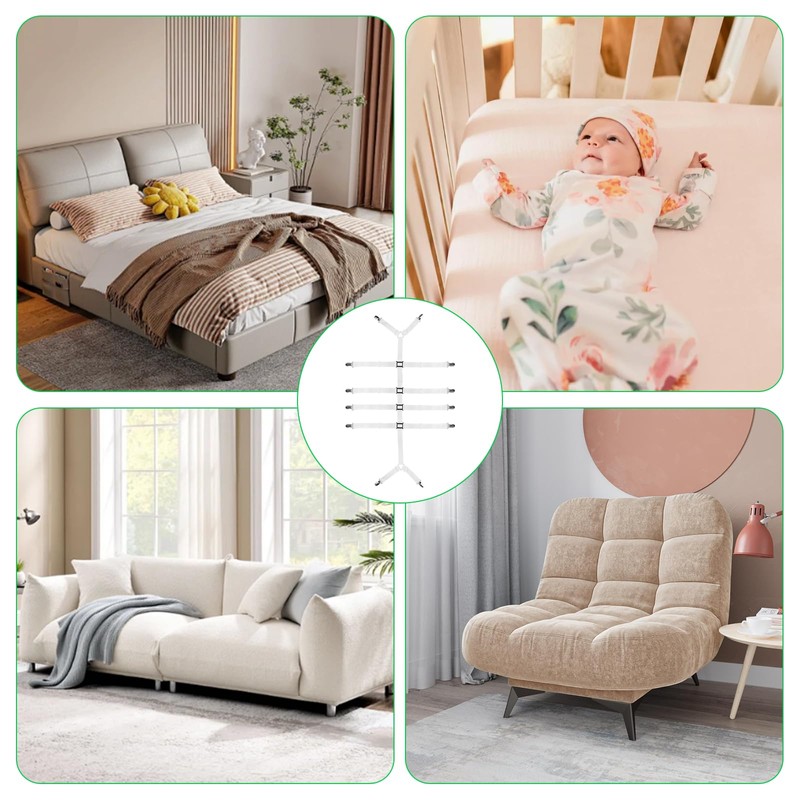 ②High durability: The fitted sheet tensioner has undergone strict quality controls and has a high durability. It can be used and washed multiple times and is not easy to damage or deform.