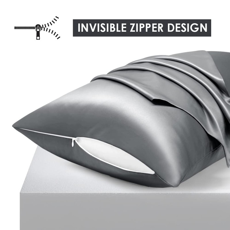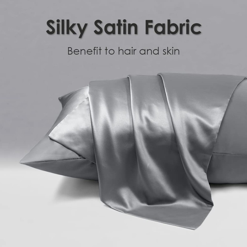 Fittia Satin Pillowcase 2 Pack, Silk Satin Pillow Cases for Hair and Skin with Zipper, Machine Washable, Grey, Standard, 20''x26''