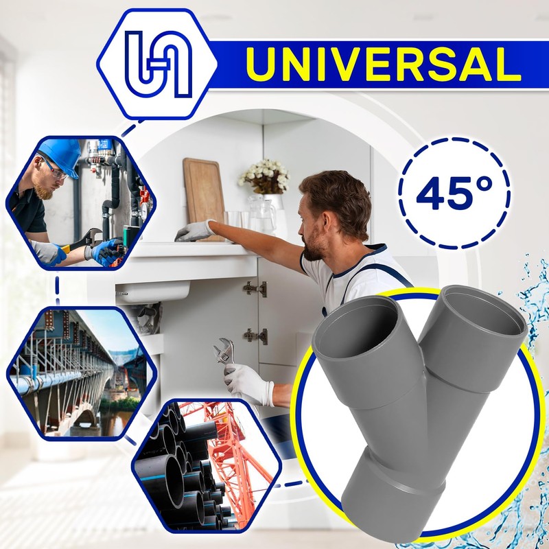 • Material: the 45° angle piece is made of polyvinyl chloride (PVC), which is very resistant to corrosion, chemicals and ultraviolet radiation