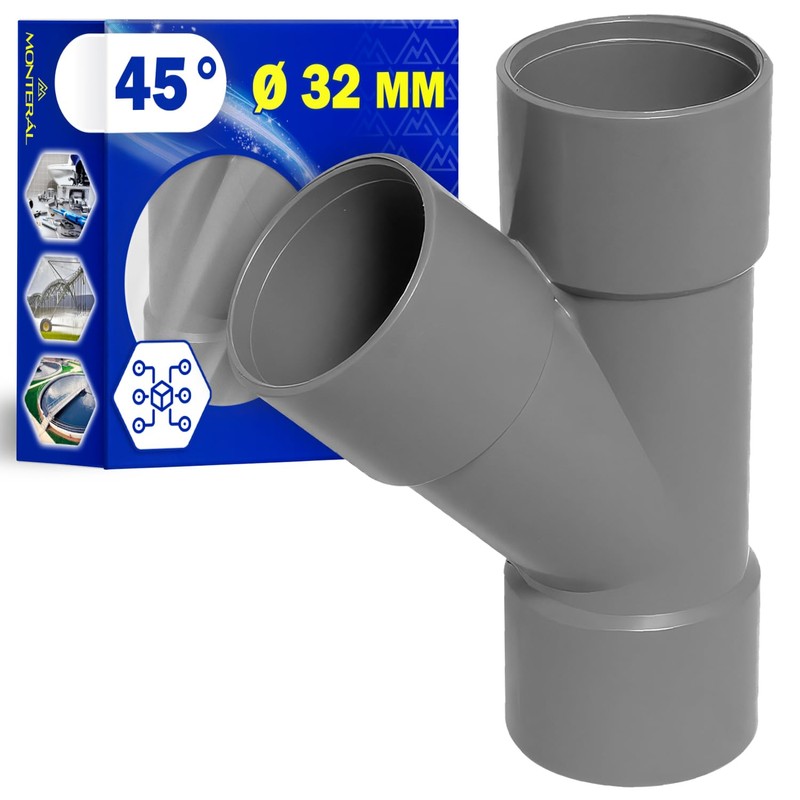 Fitting for Drain Pipe with 45 Degree Angle Diameter 32 mm Made of PVC Sleeve Used to Connect Three Pipes - Warranty 10 Years - MONTERAL